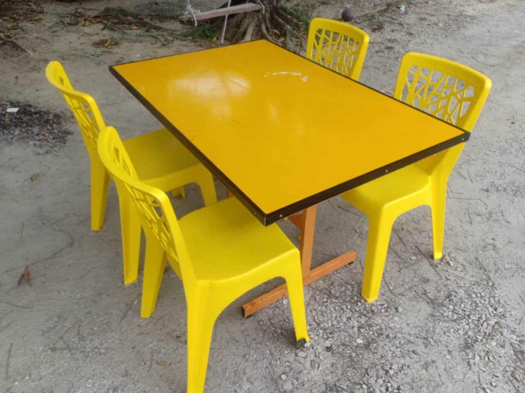 Kaki dan besi yang tebal sesuai untuk kegunaan tahan lama. Harga rm 320 satu set. Kami mempunyai sparepart setiap penutup meja atau kerusi.