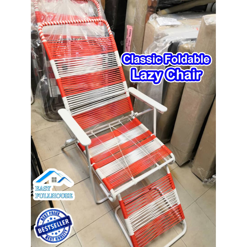 Classic Traditional Lazy Chair Foldable Metal Leg Pvc Round String Kerusi Baring Tradisional Kerusi Lipat Shopee Malaysia